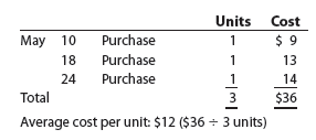 To illustrate, assume that three identical units of merchandise are purchased during May, as follows: