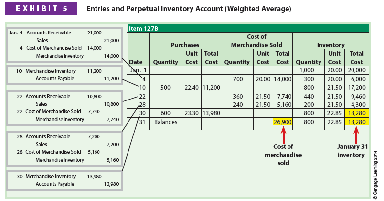 To illustrate, Exhibit 5 shows the use of weighted average under a perpetual inventory system for Item 127B.