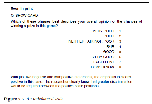Unbalanced scales should only be used for a good reason and for a specific purpose, and by experienced researchers who know what the impact is likely to be (see Figure 5.3).