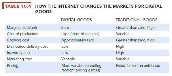 Table 10.4 describes digital goods and how they differ from traditional physical goods (eMarketer, 2018i)