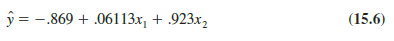 In the next section, we will discuss the use of the coefficient of multiple determination in measuring how good a fit is provided by this estimated regression equation. Before doing so, let us examine more carefully the values of b1 = .06113 and b2 = .923 in equation (15.6).