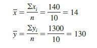 Some of the calculations necessary to develop the least squares estimated regression equation for Armand’s Pizza Parlors are shown in Table 14.2. With the sample of 10 restaurants, we have n = 10 observations. Because equations (14.6) and (14.7) require x and y we begin the calculations by computing x and y.