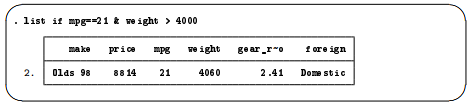 Joint tests are specified with &, not with the word and or multiple ifs. The if qualifier should be if mpg==21 & weight>4000, not if mpg==21 if weight>4000. Here is its correction: