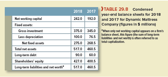 Long-term planning is concerned with the big picture. Therefore, when constructing longterm planning models it is generally acceptable to collapse all current assets and liabilities into a single figure for net working capital. Table 29.8 replaces Dynamic’s latest balance sheets with condensed versions that report only net working capital rather than individual current assets or liabilities.