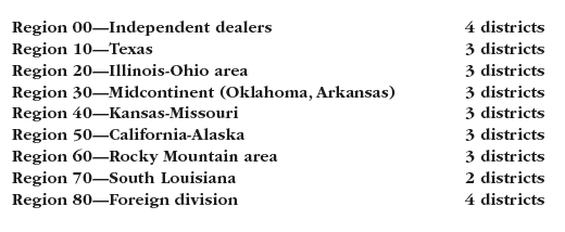 Magcobar had experienced a steady growth in its twenty-five-year history. Its products were sold nationally as well as in many foreign countries. The American market was organized into regions, and the foreign market was under a separate import-export division. The basis used for dividing the United States into regions was the concentration of oil production in various areas. For example, there was a large amount of oil-producing activity in southern Louisiana, and this area constituted the company’s largest region from the standpoint of sales, warehouses, and inventories. The following table lists the company’s nine regions and indicates the general coverage of each: