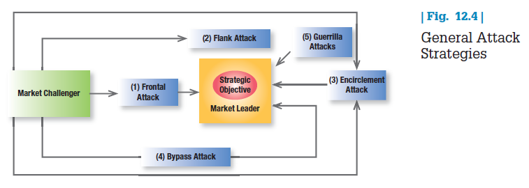 CHOOSING A GENERAL ATTACK STRATEGY Given clear opponents and objectives, what attack options are available? As Figure 12.4 shows, we can distinguish five: frontal, flank, encirclement, bypass, and guerilla attacks.