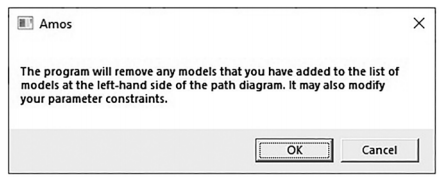 button (Multiple Group Analysis). Once you select this button, the following pop-up window will appear (See Figure 4.24).You can go ahead and hit “OK”. It is just stating that it is going to label every parameter and suggest potential model comparisons across the groups.