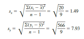 Let us now compute the sample correlation coefficient for the San Francisco electronics store. Using the data in Table 3.6, we can compute the sample standard deviations for the two variables: