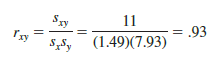 For the data involving the San Francisco electronics store, rxy = .93. Therefore, we conclude that a strong positive linear relationship occurs between the number of commercials and sales. More specifically, an increase in the number of commercials is associated with an increase in sales.