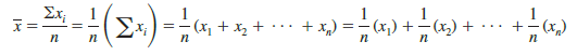 In the preceding formula, the numerator is the sum of the values of the n observations. That is,