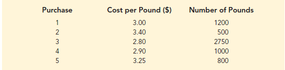 As an example of the need for a weighted mean, consider the following sample of five purchases of a raw material over the past three months.