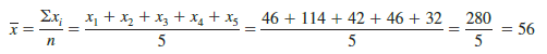 In statistical formulas, it is customary to denote the value of variable x for the first observation by x1, the value of variable x for the second observation by x2, and so on. In general, the value of variable x for the ,th observation is denoted by x,. For a sample with n observations, the formula for the sample mean is as follows.