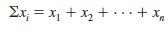 In the preceding formula, the numerator is the sum of the values of the n observations. That is,