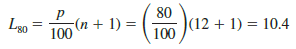 The interpretation of L80 = 10.4 is that the 80th percentile is 40% of the way between the value in position 10 and the value in position 11. In other words, the 80th percentile is the value in position 10 (6050) plus .4 times the difference between the value in position 11 (6130) and the value in position 10 (6050). Thus, the 80th percentile is