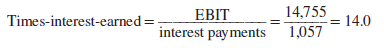 Times-Interest-Earned Ratio Another measure of financial leverage is the extent to which interest obligations are covered by earnings. Banks prefer to lend to firms whose earnings cover interest payments with room to spare. Interest coverage is measured by the ratio of earnings before interest and taxes (EBIT) to interest payments. For Home Depot,