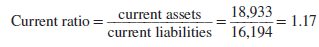 Home Depot has $1.17 in current assets for every dollar in current liabilities.