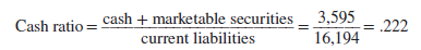 Cash Ratio A company’s most liquid assets are its holdings of cash and marketable securities. That is why analysts also look at the cash ratio:
