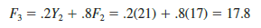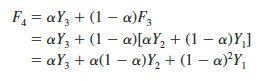 We now see that F4 is a weighted average of the first three time series values. The sum of the coefficients, or weights, for Y1, Y2, and Y3 equals 1. A similar argument can be made to show that, in general, any forecast Ft+1 is a weighted average of all the previous time series values.