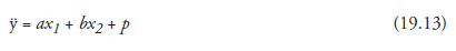 When different values of x1 and X2 are substituted, the corresponding y values should represent the known values of the dependent variable. Further, and more importantly, the equation should become the instrument to estimate the value of the dependent variable, y, for any arbitrarily chosen values of x1 and x2, within the ranges of these variables as required in the experiment. The above equation can be solved considering p as the y intercept and a and b as the slopes of the two straight lines, each conforming to the least-square method. The regression function will then be represented by a plane in a three-dimensional space, whose coordinates are y, X1, and X2. And, the plane will stretch between the two straight lines, somewhat like the fabric between two consecutive spokes of an umbrella. Solutions of such and more involved problems require the help of computer software programs, a host of which are now available, such as Statistical Package for the Social Sciences (SPSS), Biomedical Computer Programs: P Series (BMDP), and Statistical Analysis Systems (SAS). Considering (19.13), several combinations—usually a limited but sufficient number—of the numerical values of y, xp and X2, in the required order, are input to the computer. The processed output typically contains the numerical values of a, b, and p, often supplemented with such information as the standard deviation and regression coefficient of the variables, the coefficient of determination, and the standard error of the estimation done.