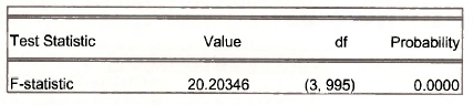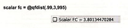 The critical value for the test comes from an F-distribution with 3 numerator degrees of freedom and 995 denominator degrees of freedom. The critical value is computed using @qfdist.