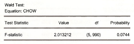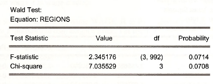 Test the null hypothesis that there are no regional differences by selecting View/Coefficient Tests/Wald – Coefficient Restrictions.