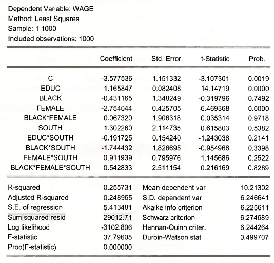 To obtain the results for the NONSOUTH estimate the equation using the observations for which SOUTH = 0.