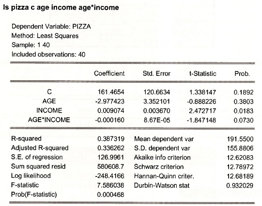 Open the workfile pizza.wfl. Estimate the least squares regression of PIZZA on AGE and INCOME.