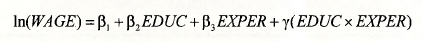To illustrate we use a wage equation with wages a function of education and the worker’s years of experience. What we expect is that young, inexperienced workers will have relatively low wages; with additional experience their wages will rise, but the wages will begin to decline after middle age, as the worker nears retirement. To capture this life-cycle pattern of wages we introduce experience and experience squared to explain the level of wages