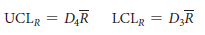 Like factor A2 used in the x control limit calculation, factors D3 and D4 are found in Figure 18.6. Just as with A2, these factors narrow the limits with subgroup size. With n = 10 in our example, D3 = 0.22 and D4 = 1.78. Applying the numbers to the LCLR and UCLR formulas, we have this: