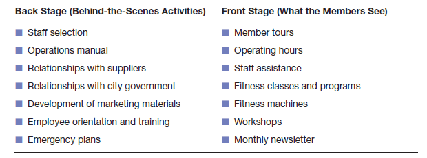 A useful way to illustrate how your business will be run is to first articulate your general approach to operations in terms of what’s most important and what the make-or-break issues are. You can then frame the discussion in terms of “back stage,” or behind-the-scenes activities, and “front stage,” or what the cus- tomer sees and experiences. For example, if you’re opening a new fitness center, the back-stage and the front-stage issues might be broken down as follows: