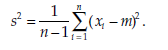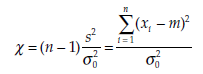 where σ20 is the given variance, s2 the variance estimated from the sample, and m the mean estimated from the sample. The statistic % follows a chi-square distribution with n – 1 degrees of freedom, which is written x2(n – 1).