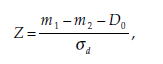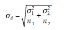 is the standard deviation of the difference (m1-m2).