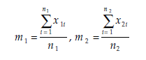 x1 = the mean estimated from the sample of variable X in population 1,