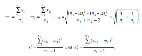 Research question Is the difference between the two means m1 and m2 of two populations that have the same unknown variance σ2 significantly different from a given value D0 (for instance zero)?