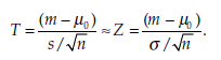 1.2. Comparing the mean m of a sample to a reference value when μ0 when the variance σ2 of the population is nknown