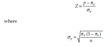 Null hypothesis, H0: p = p0,