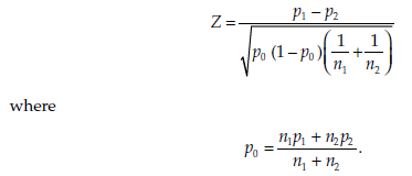 Null hypothesis, H0: p 1 = p 2,
