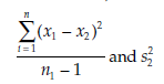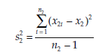 s2 = the variance of variable X in population i, estimated from a sample of size n.