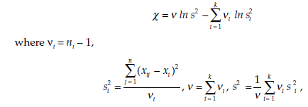 Research question Do k variances σ21 , σ22 , ….σ2k observed in k samples, differ significantly from each other?