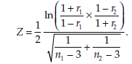 - The two linear correlation coefficients r1 and r2 are obtained from two samples of size n1 and n2 respectively.