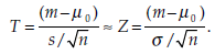 1.2. Comparing the mean m of a sample to a reference value when μ0 when the variance σ2 of the population is nknown