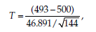 Two-tail test: As – Za/2 < T < Za/2 ( -1.96 < -1.79 < 1.96), the null hypothesis, stating that the mean of the population equals 500 (p = 500), cannot be rejected.