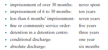 The rehabilitation periods set out in the Act vary depending on the type of sentence that has been received. The tariff is as follows: