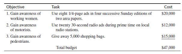 Under the objective-and-task method, a retailer clearly defines its promotion goals and prepares a budget to satisfy them. A goal might be to have 70 percent of the people in its trading area know a retailer’s name by the end of a one-month promotion campaign, up from 50 percent. To do so, it would determine the tasks and costs required to achieve that goal: