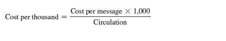 A medium’s efficiency relates to the cost of reaching a given number of target customers. Media rates are often expressed in terms of cost per 1,000 readers, watchers, or listeners: