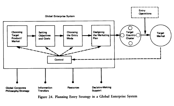 The elements of a foreign market entry strategy, as depicted in Figure 1 in Chapter 1, are the same for a global enterprise as for other international companies. The constituent entry plan always focuses on a single product (or product line) and a single foreign target market. What is different in the global enterprise is the context or internal system environment of worldwide operations in which managers make entry decisions. In such a system, managers can use experience acquired in one country for entry decisions in a second country, and they can improve the cost-effectiveness of entry decisions by coordinating them across countries.