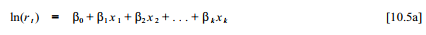 The denominator in [10.4] is termed the “exposure” and is often measured in units such as person-years. We model the logarithm of incidence rate as a linear function of one or more predictors:
