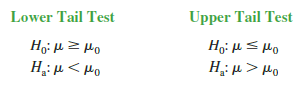 One-tailed tests about a population mean take one of the following two forms.