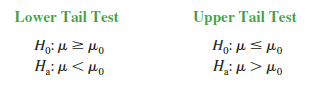 At the beginning of this section, we said that one-tailed tests about a population mean take one of the following two forms: