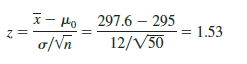 First we compute the value of the test statistic. For the s known case, the test statistic z is a standard normal random variable. Using equation (9.1) with x = 297.6, the value of the test statistic is